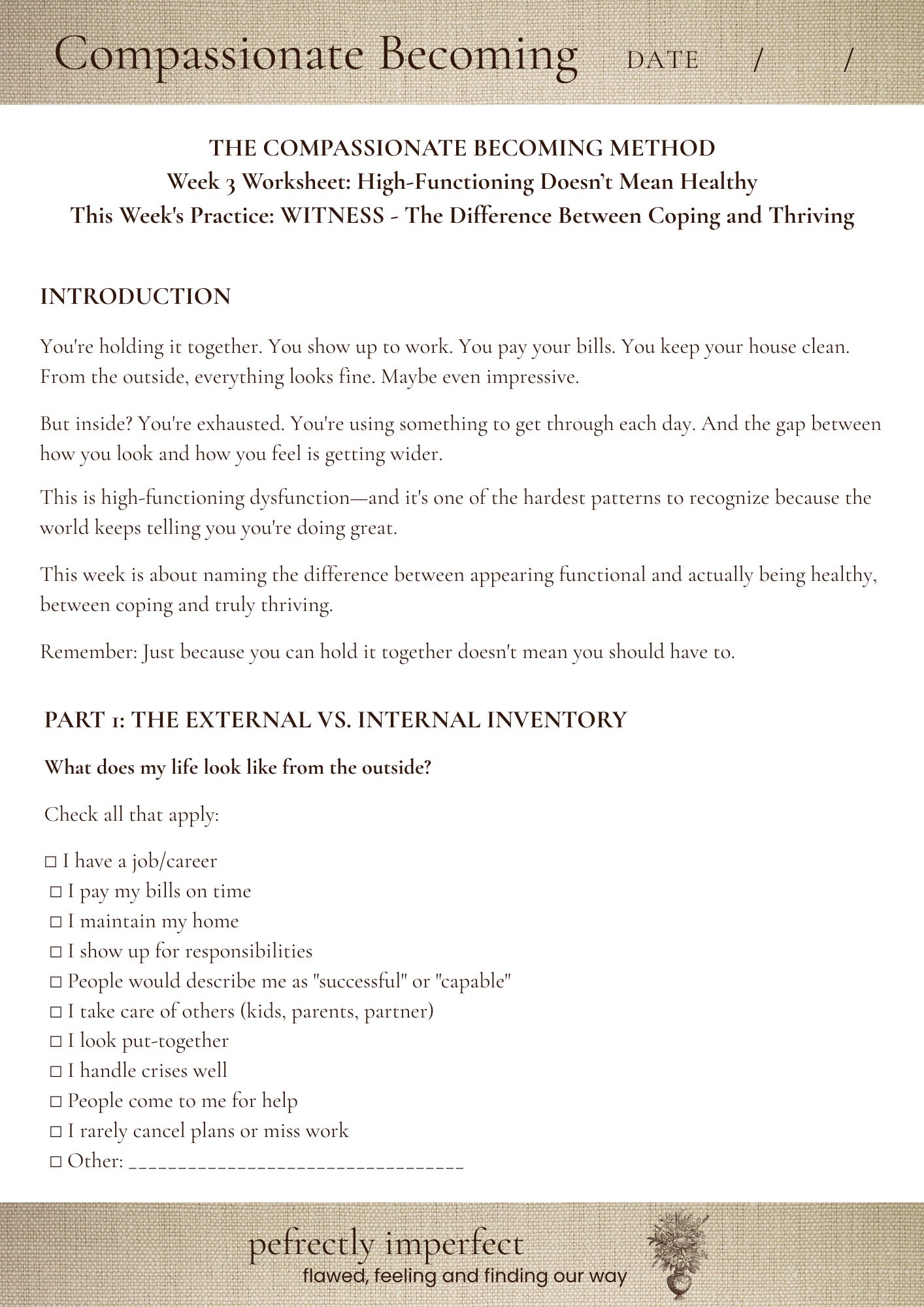 The worksheet that accompanies this post for paid subscribers helps you determine whether or not it’s time for you to reach out for some help to change these behaviors. This can be incredibly helpful if you’ve been having a nagging feeling that something’s out of control but, from the outside, your life seems okay. Here’s a sneak peek at the first page of the worksheet.